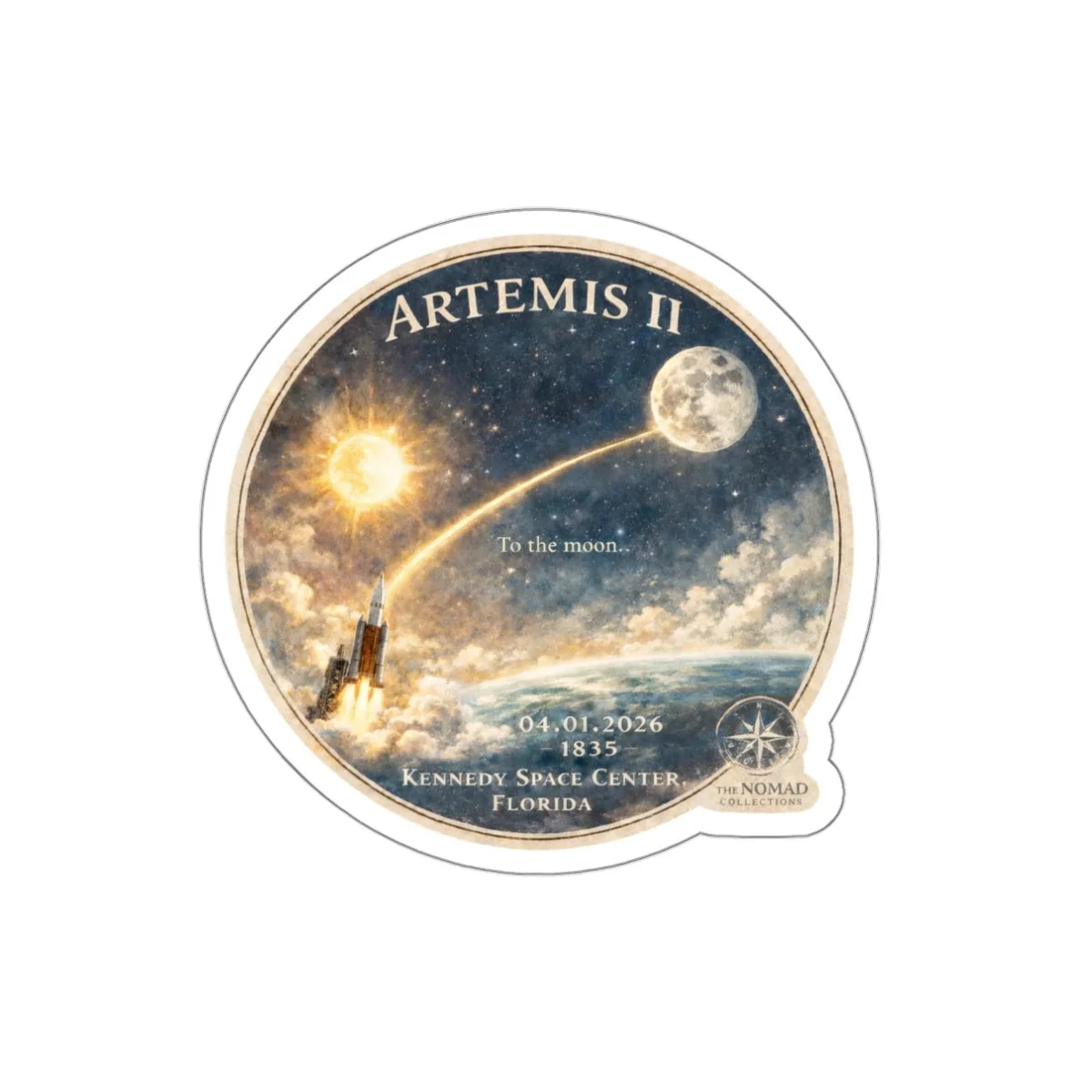 Created as a commemorative piece for those near the Artemis II launch, this design captures the energy of a historic moment. Whether you’re there in person or following the journey, it marks where you were when it all lifted off.