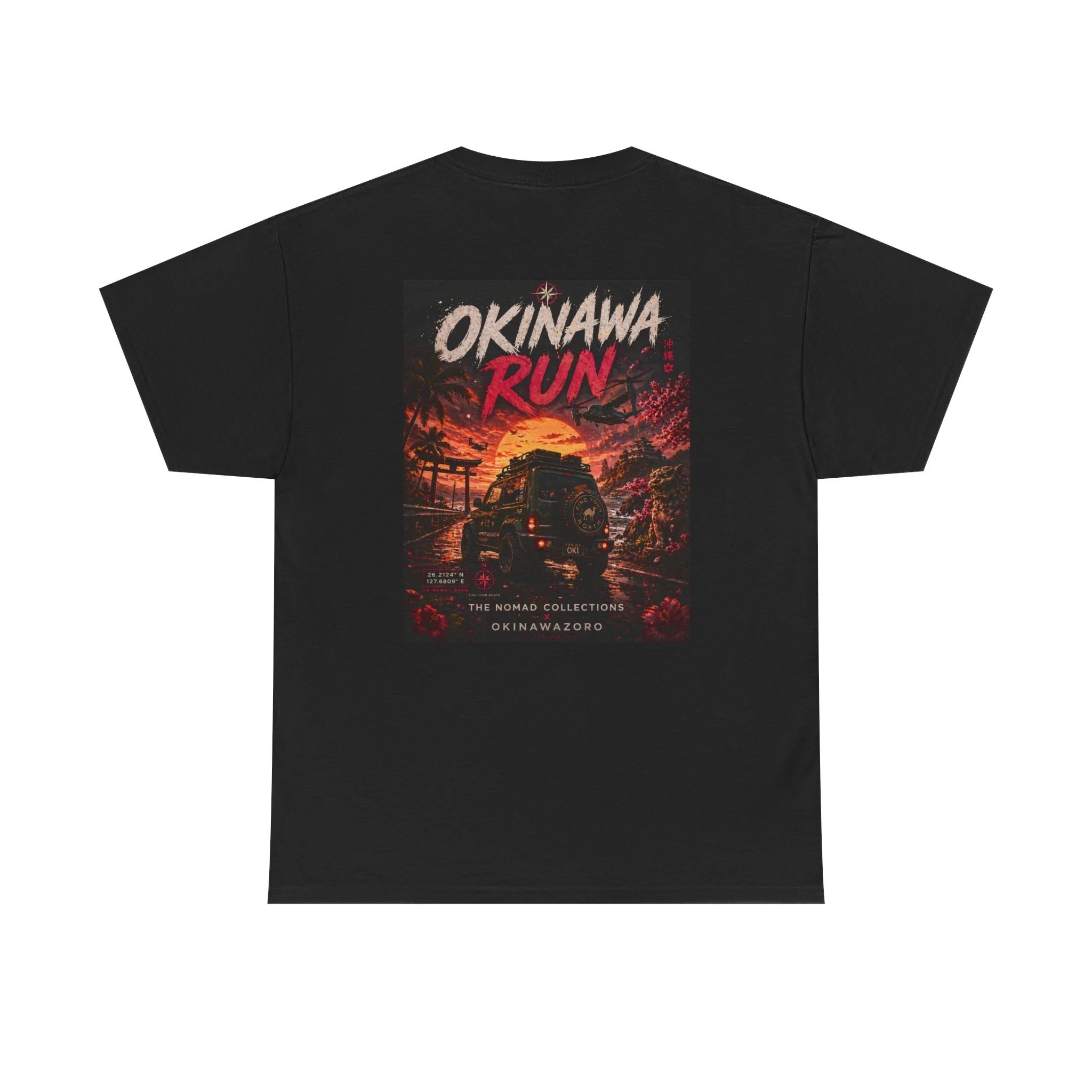 A soft, midweight tee built around the energy of the island after dark. The front keeps it minimal with a clean emblem over the heart, while the back brings it all together with a bold, sunset-soaked circular graphic stamped with “OKINAWA RUN.” Inspired by coastal drives, neon glow, and the rhythm of the road, this piece captures the feeling of chasing horizon lines somewhere between city lights and open water.