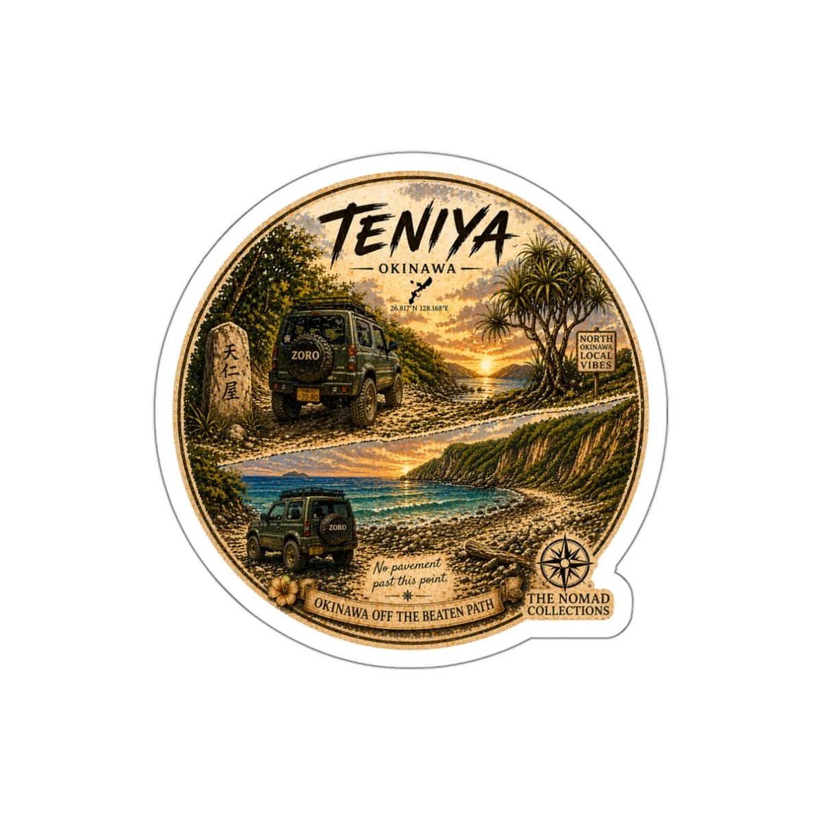 Stick it on a laptop, water bottle, or field journal to carry a little Okinawan coastline and the spirit of off-grid exploration with you.